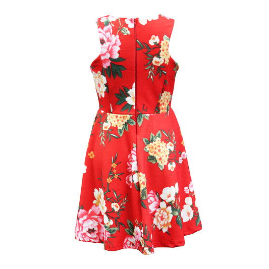 Tween Sleeveless Floral-Printed Pleated Fit-And-Flare Dress