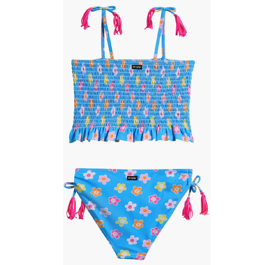 Tween Floral Ruffle Smocked Two-Piece Swimsuit