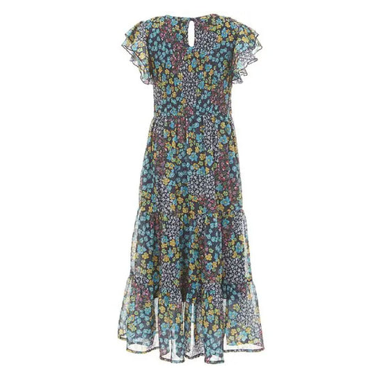 Tween Ruffle Sleeve Floral Printed Chiffon Maxi