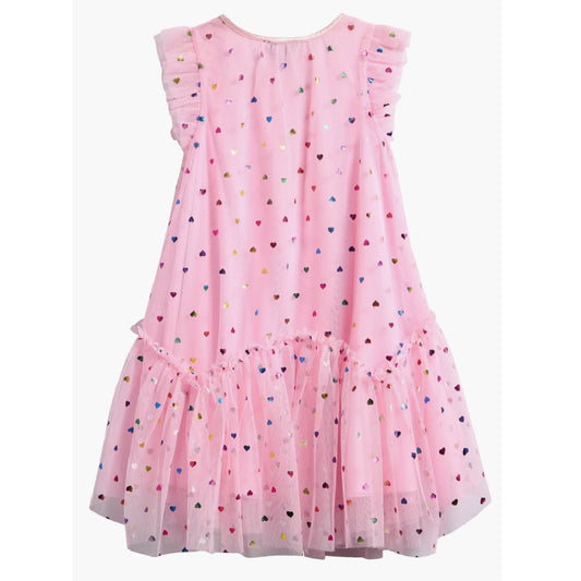 Girls Foil Heart Mesh Trapeze Party Dress