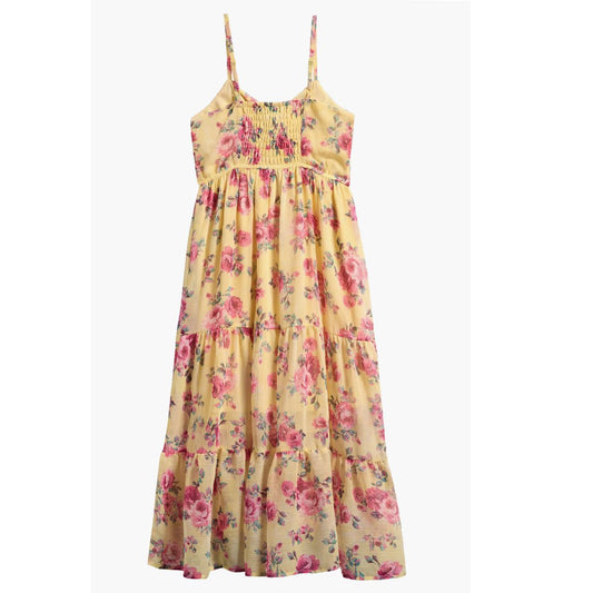 Tween Ruffle Sleeve Floral Printed Chiffon Maxi