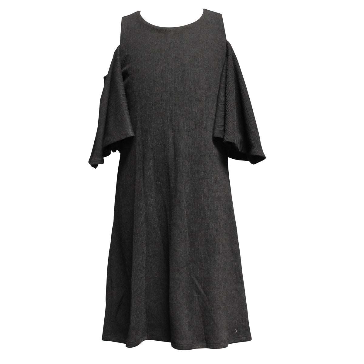 This cold shoulder dress is perfect for special occasions. It features bell sleeves and a stylish cut-out shoulder look, in a classic black color. Ideal for young ladies, this dress is sure to make a statement. Perfect for tweens and young girls!