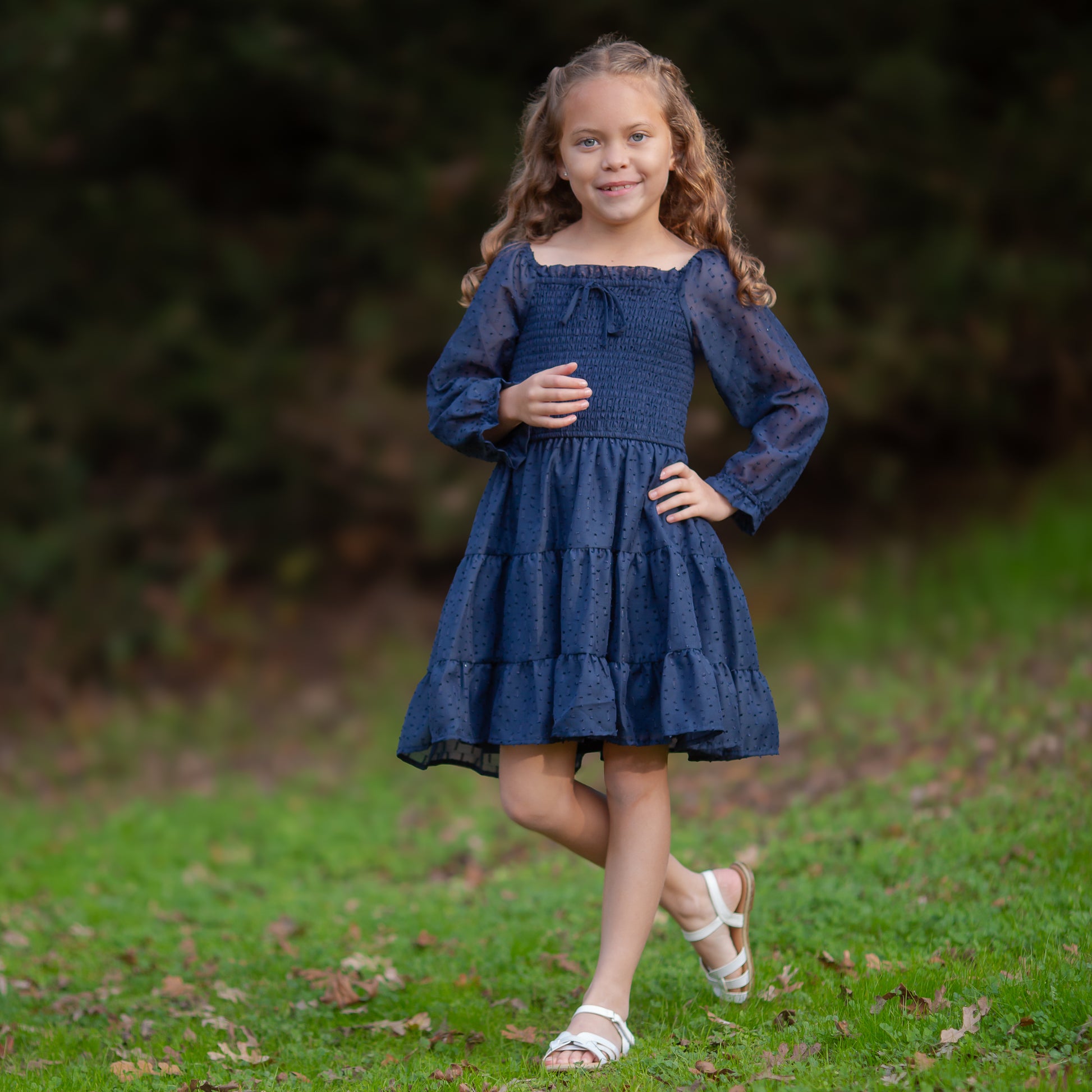 Twirl into style with this charming smocked long sleeve dress! Featuring delicate smocking details across the bodice and cozy long sleeves perfect for cooler days, this dress combines comfort with timeless elegance. The relaxed fit allows plenty of room to play, while the classic design works for everything from school days to special occasions. A wardrobe essential that grows with her!