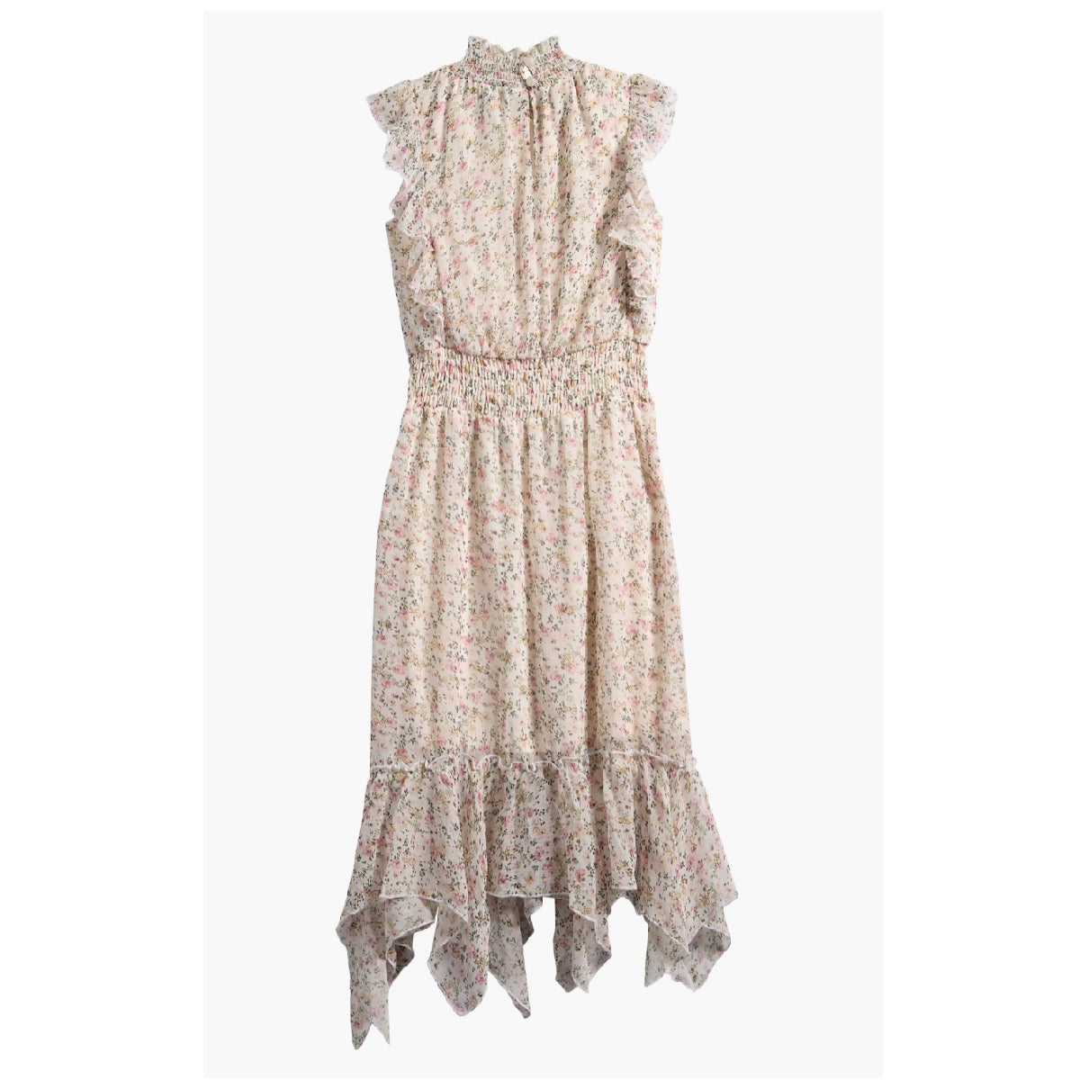 This ivory floral sleeveless chiffon maxi dress is a playful and elegant choice for tweens. Its soft, flowing fabric and charming floral pattern create a light, airy feel perfect for warm days and special moments. The sleeveless design ensures comfort and freedom of movement, making it a delightful addition to any young wardrobe.
